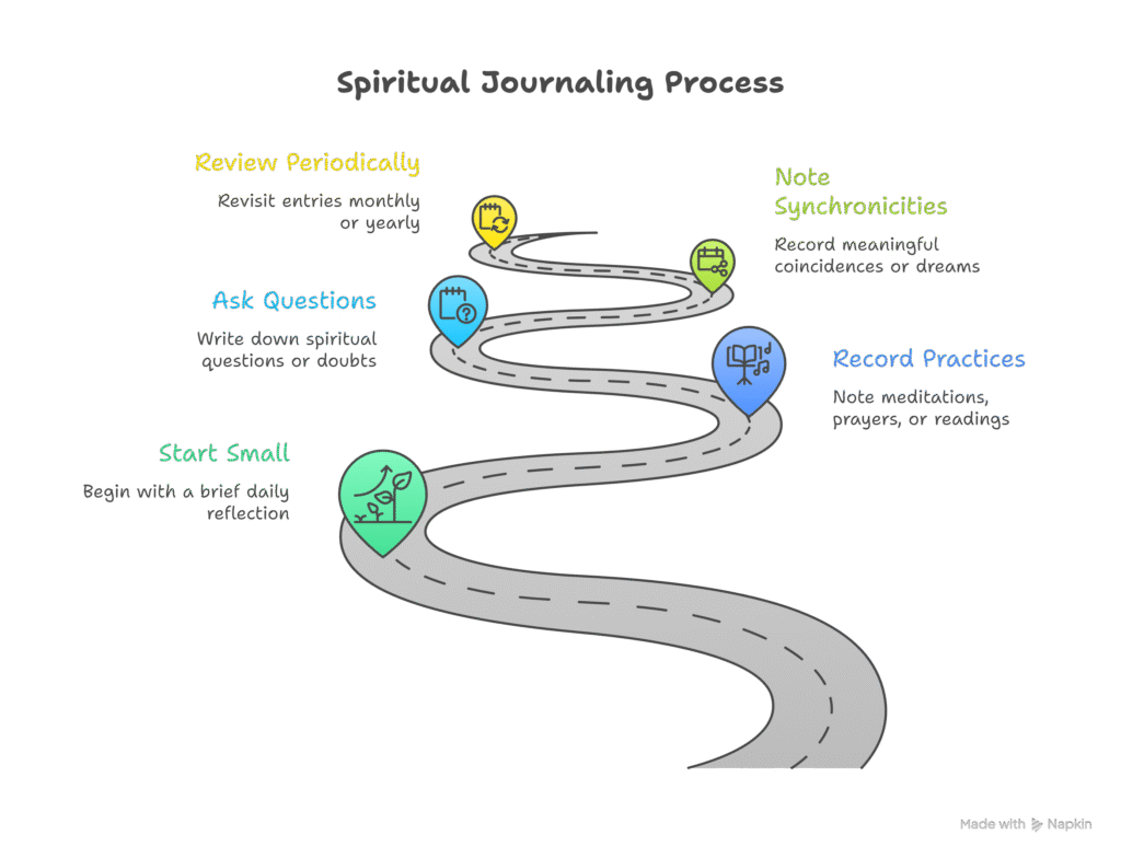- Write down spiritual questions or doubts as a path to deeper inquiry.